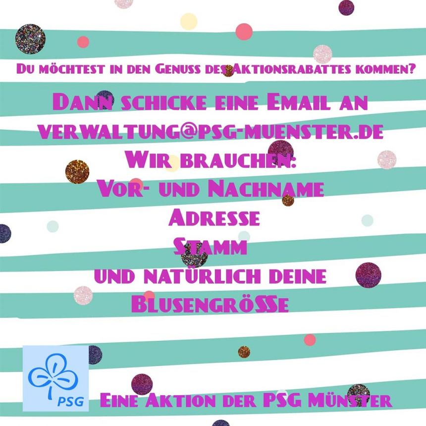 Falls du in den Genuss der Rabattaktion kommen möchtest, schicke eine Email an verwaltung@psg-muenster.de.