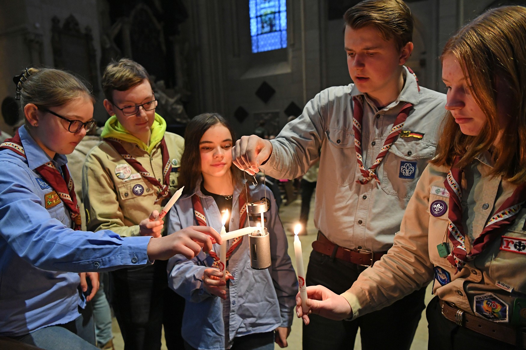 Die bistumsweite ökumenische Aussendungsfeier findet am Sonntag, 14. Dezember 2025 um 15:00 Uhr im St. Paulus Dom in Münster statt. Zur Feier unter dem Motto „Ein Funke Mut“ werden rund 2.000 Pfadfinderinnen und Pfadfinder erwartet, die das Licht in den kommenden Wochen im gesamten Bistum verteilen.