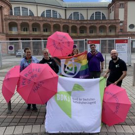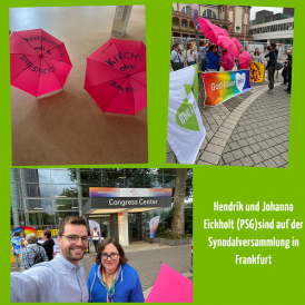 Es fing am Mittwochabend mit dem ‚synodalen Lagerfeuer‘ an. Ein Grillabend, zu dem alle ‚Synodalen‘ (Menschen, die am synodalen Weg teilnehmen) und Interessierte aus den Jugendverbänden eingeladen waren. Es sind Jugendliche und junge Erwachsene aus ganz Deutschland gekommen. Für die PSG waren Johanna aus Münster & Franzi und Caecilia von der Bundesebene dabei. In den Tagen danach gab es jeweils zum Auftakt und zum Ende der Sitzungen Demonstrationen - mit Bannern und bunten Regenschirmen, die zeigen: Kirche ist bunt.